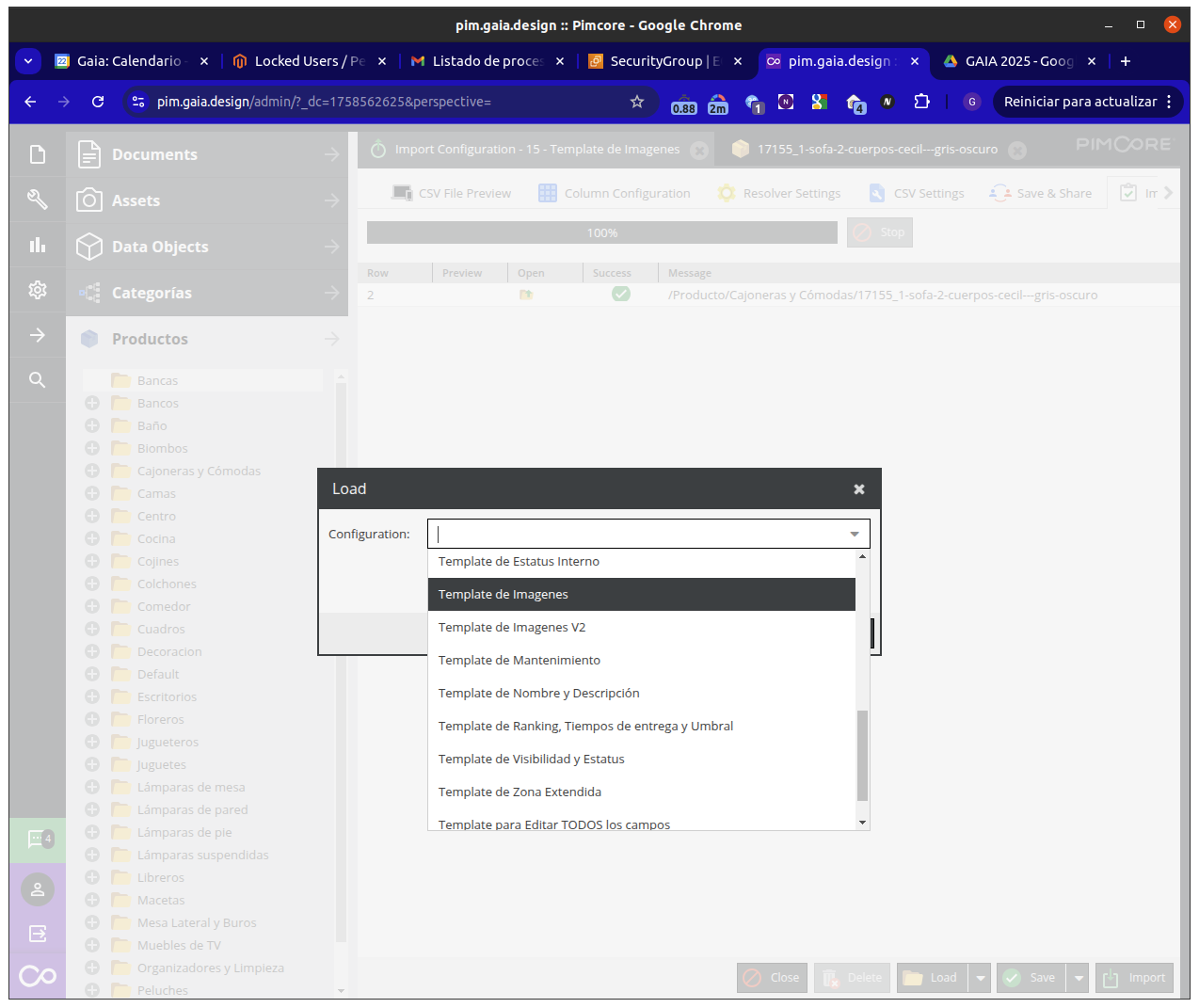 Una vez cargado el csv, se selecciona el template "Template de imagenes"