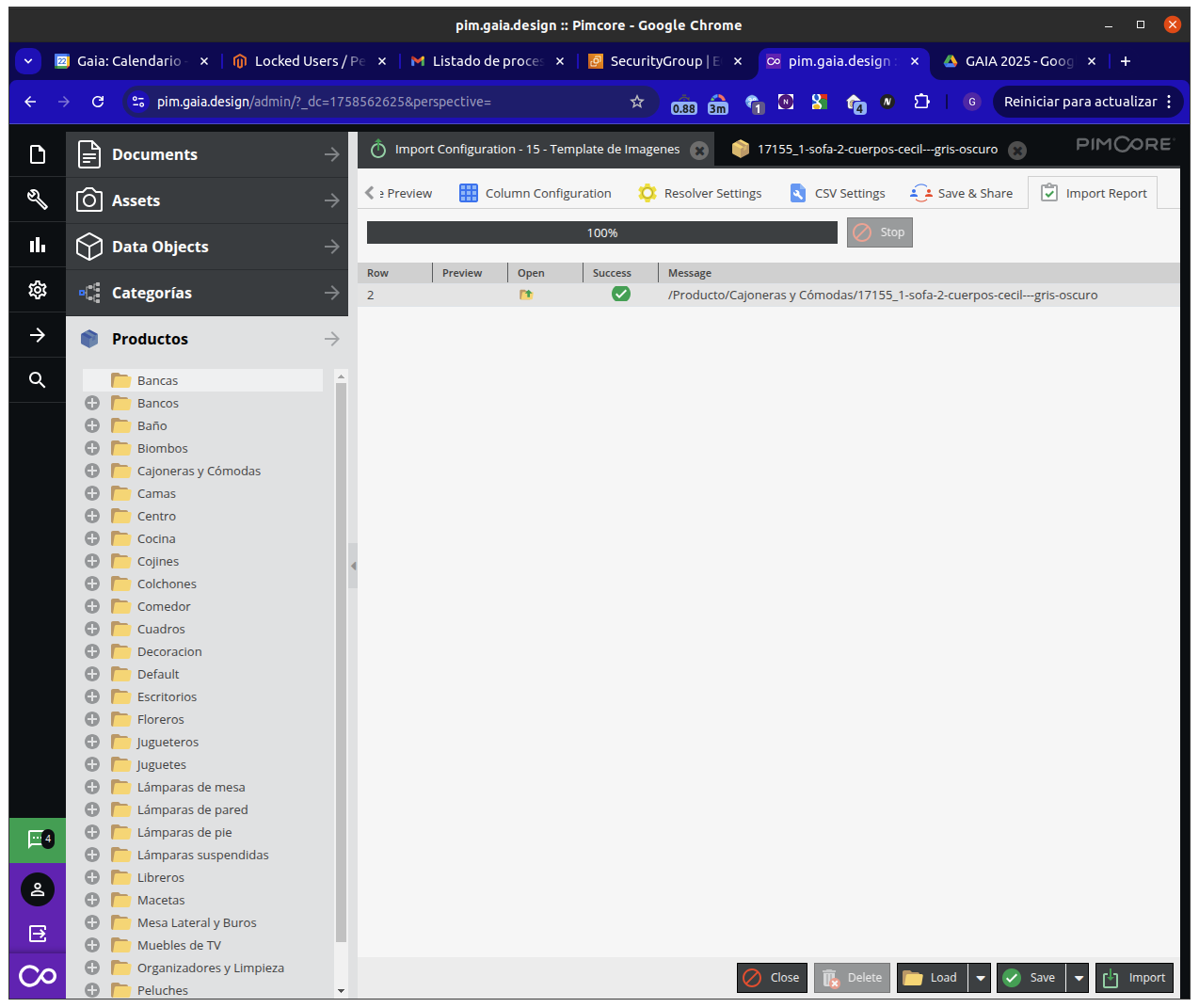 En caso de que algún campo requerido haga falta pimcore lanzará una notificación en la sección de resultados, los productos que no tengan todos los campos requeridos no se crearán, por lo que será suficiente con corregirlos en el csv para intentar de nuevo